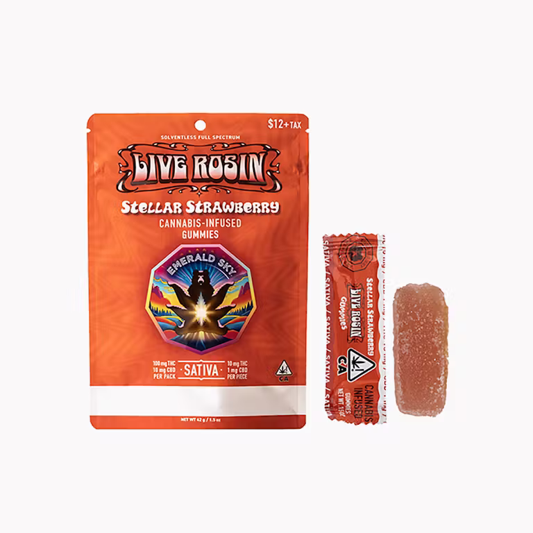 Emerald Sky | Stella Strawberry | Live Rosin Gummies | [100mg] 10pk | Sativa