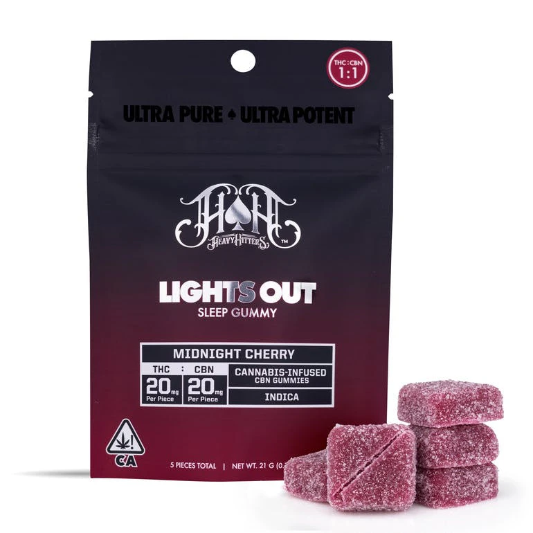 Heavy Hitters | Midnight Cherry | Gummies | [200mg] 1:1 THC:CBN 5pk | Indica